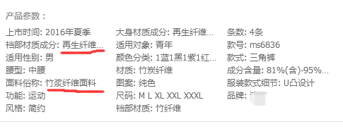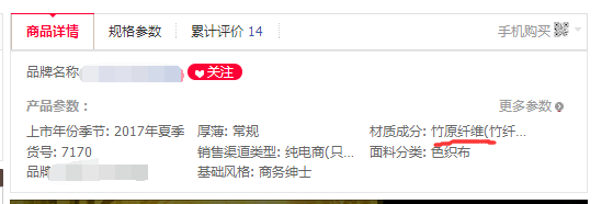 在淘寶搜索”竹纖維“產品 查看他們成分表